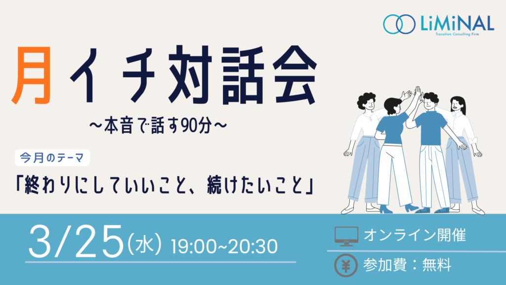 LiMiNALの月イチ対話会は、少人数(10名程度)で行う対話型のイベントです。